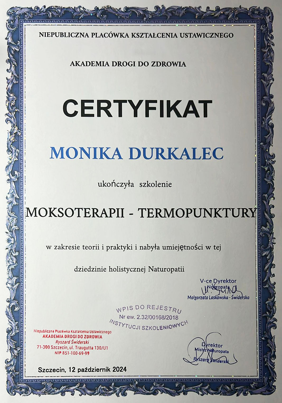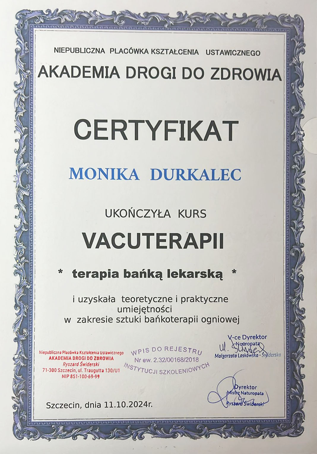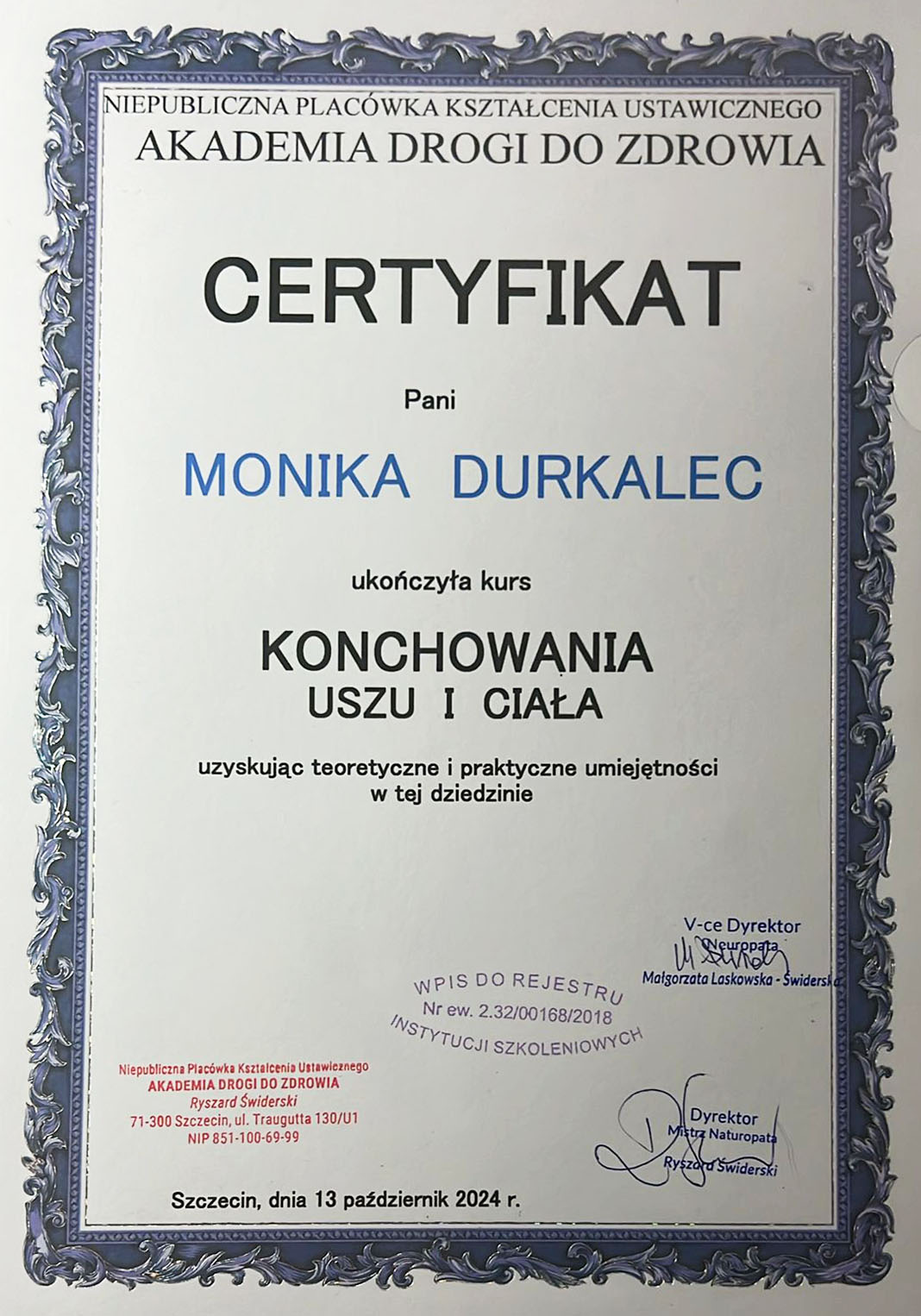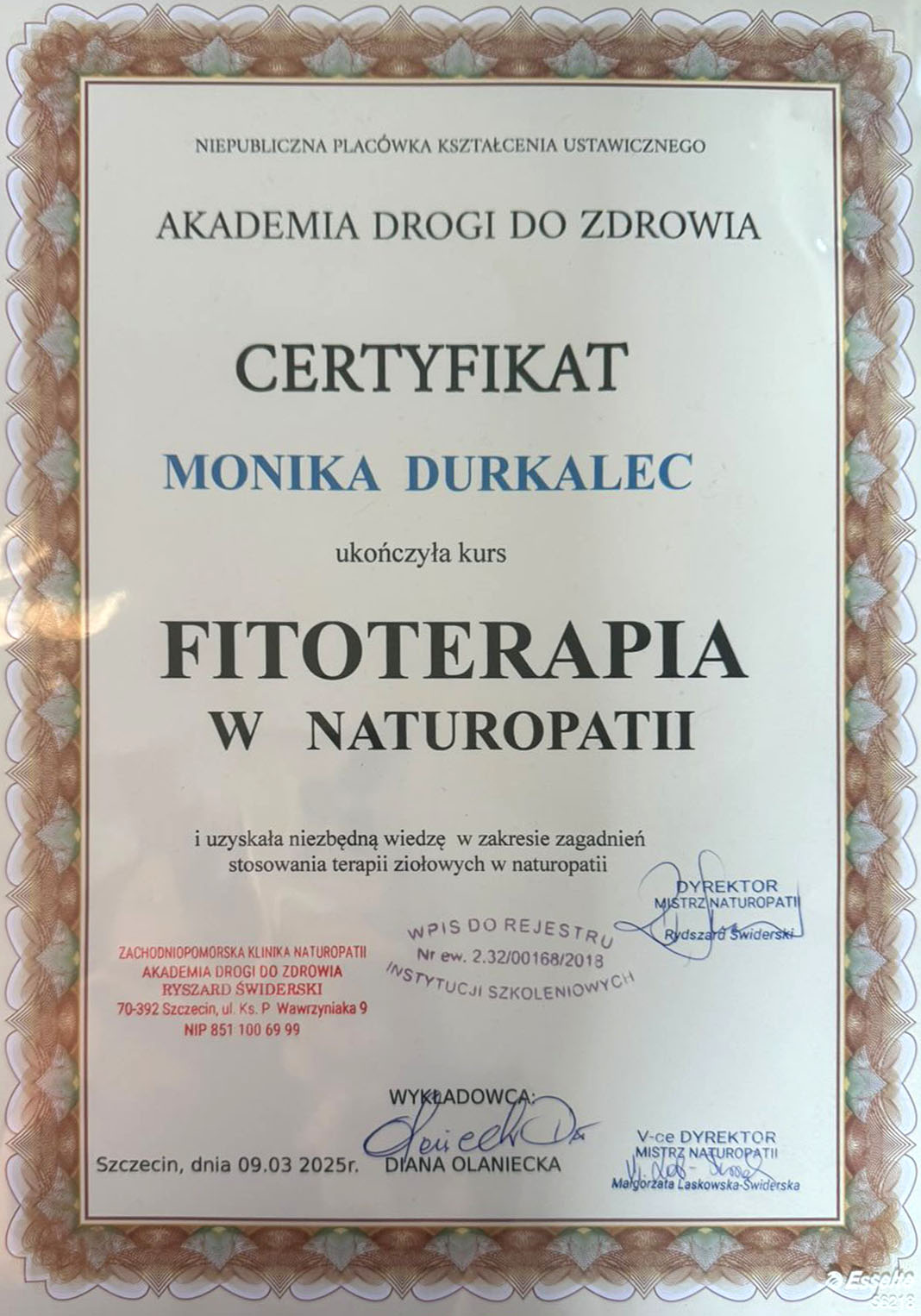Jestem naturoterapeutką z wieloletnim doświadczeniem, z zamiłowania do zdrowia i natury. Moją pasją jest przywracanie ludziom zdrowia w naturalny sposób oraz przywracanie im uśmiechu i energii do szczęśliwego życia, wolnego od dolegliwości związanych ze złym samopoczuciem.